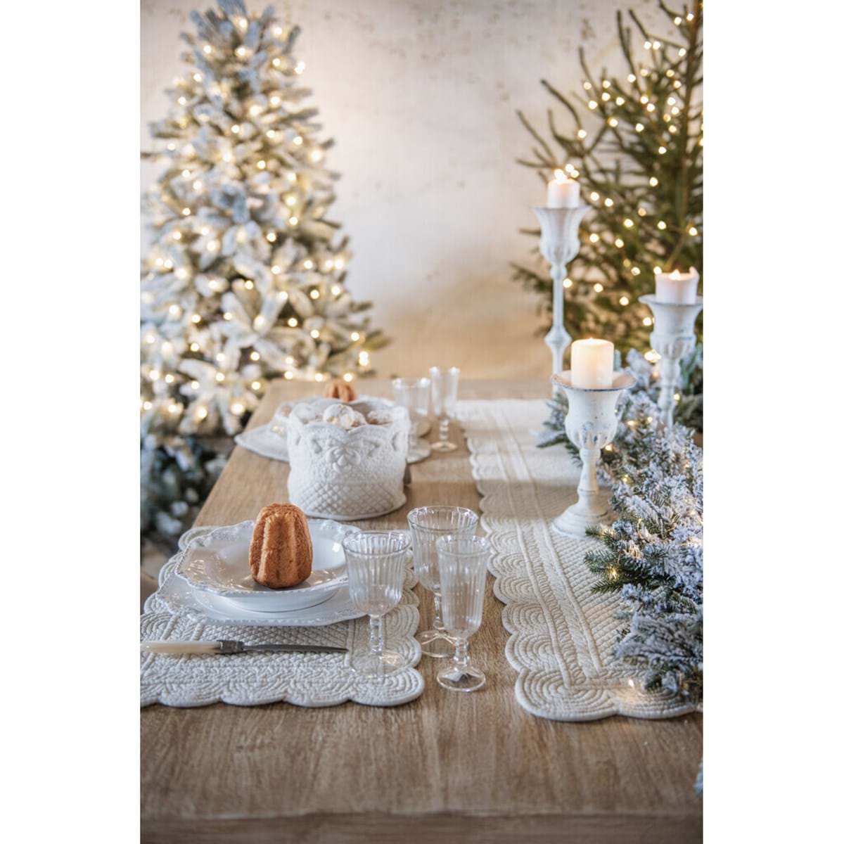 Idealna praktyczna dekoracja stołu dla ceniących sobie nostalgiczny klimat wnętrza, który ma wymiar ponadczasowy. Wnieś odrobinę stylu shabby chic do swojego stołu dzięki tej podkładce Blanc MariClo'.