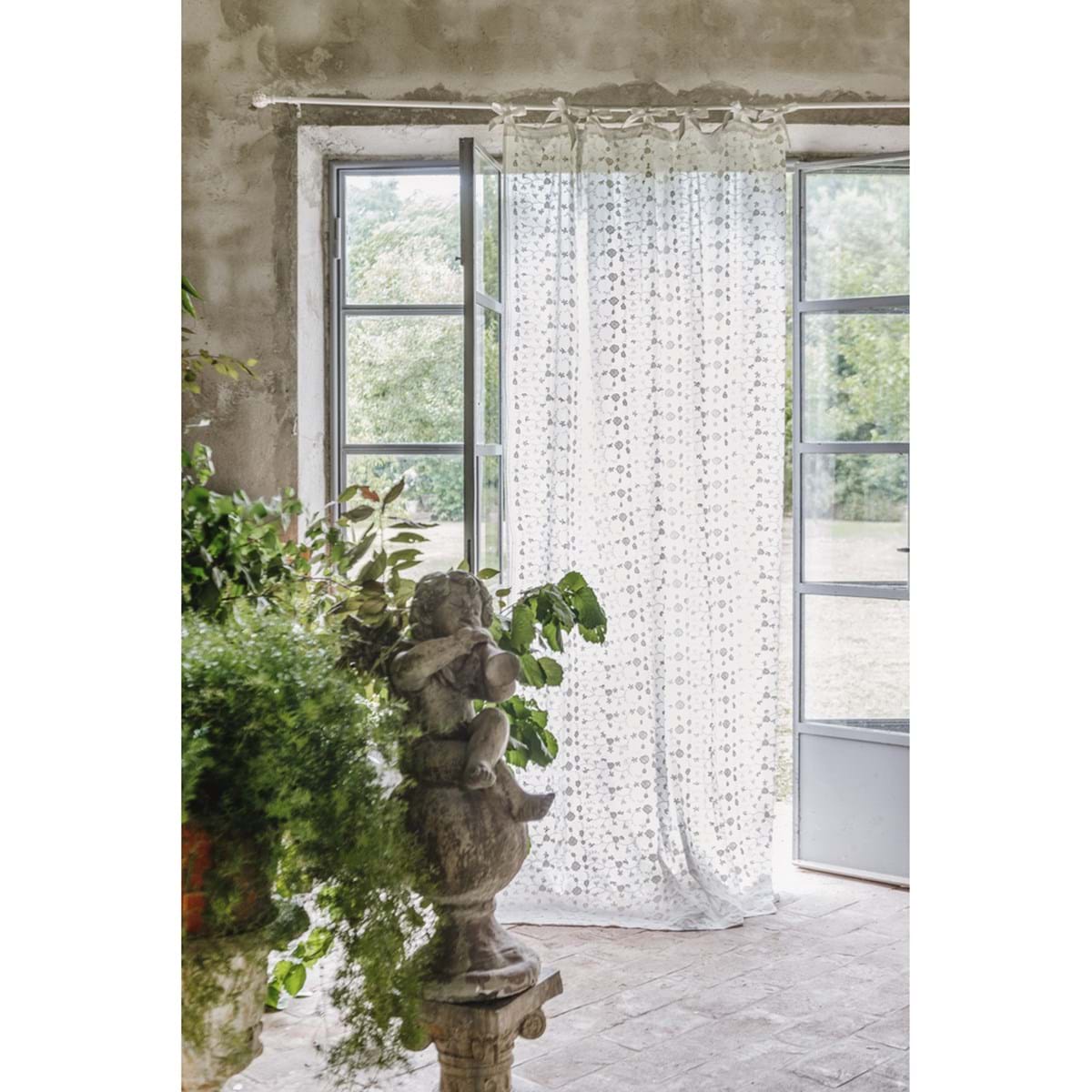 Wyjątkowa zasłona z renomowanej kolekcji Righe Fiorite Blanc MariClo wyróżnia się misternym i bogatym haftem.Wykonana z wysokiej jakości koronkowych detali zasłona wywołuje poczucie ponadczasowej elegancji, idealnie nadaje się do wzbogacenia każdego otoczenia odrobiną klasyki.Wykonana z najwyższej jakości tkanin zasłona jest trwała i miękka w dotyku.Połączenie materiałów najwyższej jakości gwarantuje długą żywotność i zawsze nienaganny wygląd.