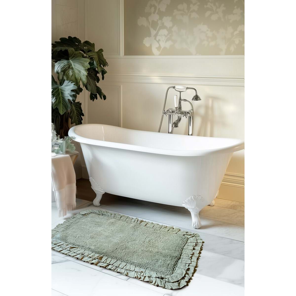 Wykonany w 100% z bawełny dywan jest miękki, chłonny i trwały. Falbana na krawędzi o delikatnym i romantycznym wzorze dodaje odrobinę elegancji i wyrafinowania. Zielony kolor, ponadczasowa klasyka, idealnie komponuje się z każdym stylem łazienki. Praktyczna dekoracja do stylowej łazienki.