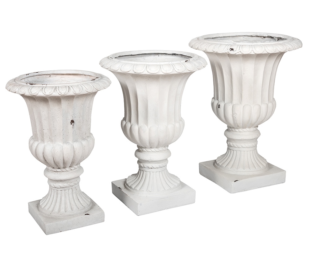 Stylizowany puchar w klasycznym wydaniu, ozdobiony subtelnym grawerem. Praktyczna dekoracja werandy oraz tarasu. Ustawione przed wejściem w parę zaakcentują klimat prowansalskiego wnętrza.