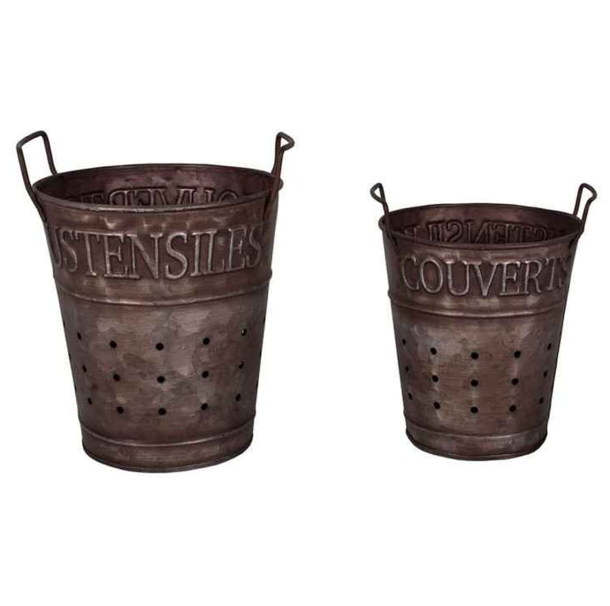 Zestaw 2 uchwytów na sztućce/przybory kuchenne: Ten zestaw dwóch cynkowych uchwytów na sztućce marki Antic Line to niezbędny pojemnik na przybory kuchenne, ułatwiający i porządkujący obsługę.Można go postawić na stole lub blacie, umożliwiając przechowywanie i prezentację sztućców przed podaniem.